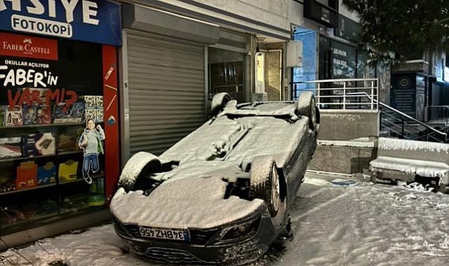 Beylikdüzü'nde temizleme yapan kar küreme aracı virajı alamayınca park halindeki otomobile çarptı. Park halindeki otomobil çarpmanın etkisiyle ters döndü. O anlar güvenlik kamerası tarafından görüntülendi.