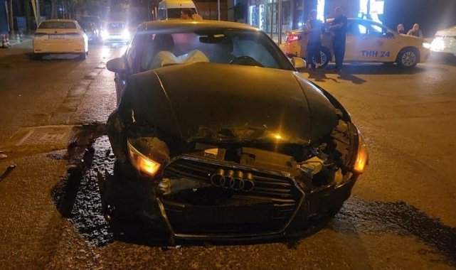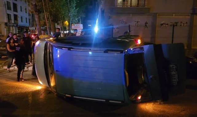 Beylikdüzü'nde yokuş aşağı seyir halindeki otomobil, ara sokaktan çıkan hafif ticari araca çarptı. Kazanın etkisiyle hafif ticari araç takla atarak yan yattı.