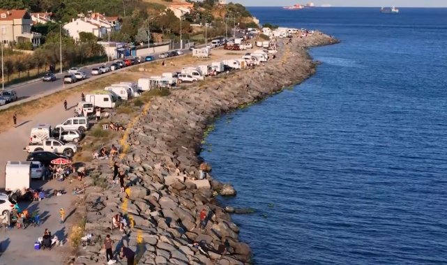 Beylikdüzü'nde sahile gelen vatandaşlar karavanların sahili işgali nedeniyle yer bulamadıklarını söylerken, karavancılar ise kendilerine yer gösterilmediğini ifade etti. Sahil şeridine park eden karavanların yoğunluğu havadan dron ile görüntülendi.