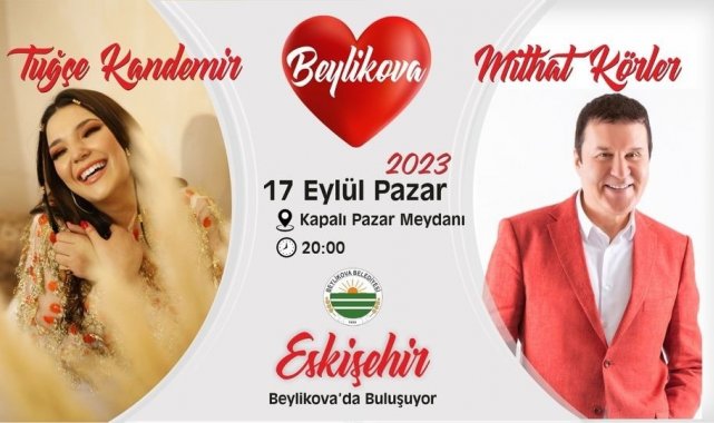 17 Eylül Pazar tarihinde Beylikova Belediyesi tarafından organize edilen gecede Tuğçe Kandemir ve Mithat Körler sahne alacak