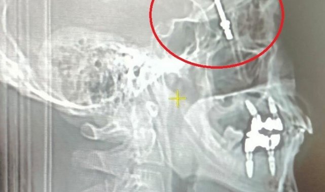 Baygınlık geçiren Yılmaz, kliniğin kendi aracıyla hastaneye kaldırıldı. Tomografi çekiminde vidanın beynine kadar ilerlediği ortaya çıktı. Acil ameliyata alınan talihsiz adam, saatler süren operasyonla ölümden döndü.