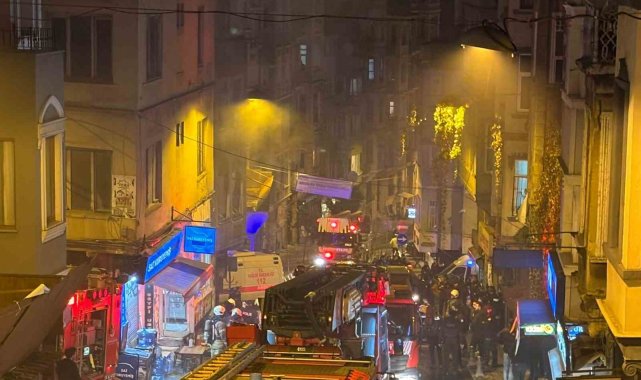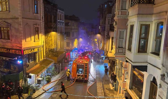 Beyoğlu'nda 4 katlı bir binanın 1'inci katında yangın çıktı. Rüzgarın da etkisiyle büyüyen yangında çeşitli patlamalar meydana gelirken, bina sakini 2 kişi çatıya sığındı.