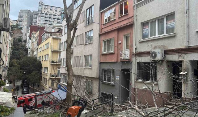 Beyoğlu'nda şiddetli rüzgar nedeniyle bir ağacın kırılan dalları binanın üzerine devrildi.