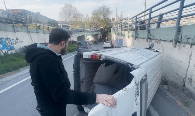 İstanbul Beyoğlu'nda sürücüsünün direksiyon hakimiyetini kaybettiği hafif ticari araç kaldırıma çarparak devrildi. Sürücünün burnunun bile kanamadığı kaza sonrası araç içerisinde çalan 'Kabahat bende' şarkısı dikkat çekti.