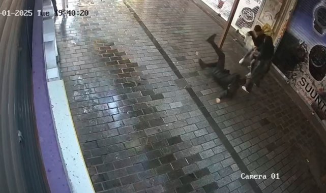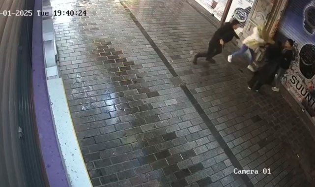 Beyoğlu'nda bir şüpheli, yanındaki kadına şiddet uyguladığı esnada orada bulanan bekçi olaya müdahale etti. Bekçi, kendisine yumrukla saldıran ve elini beline atan şüpheliyi bacağından vurarak etkisiz hale getirdi. O anlar saniye saniye güvenlik kamerasına yansıdı.
