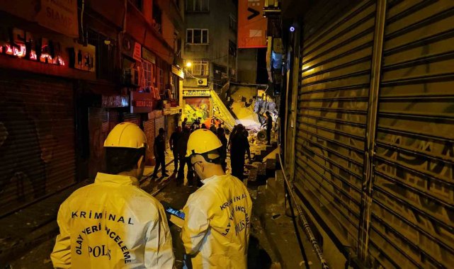 Beyoğlu'nda 2 katlı binanın alt katında yer alan büfede tüp patlaması sonucu yıkılan binanın enkaz kaldırma çalışmaları devam ediyor.