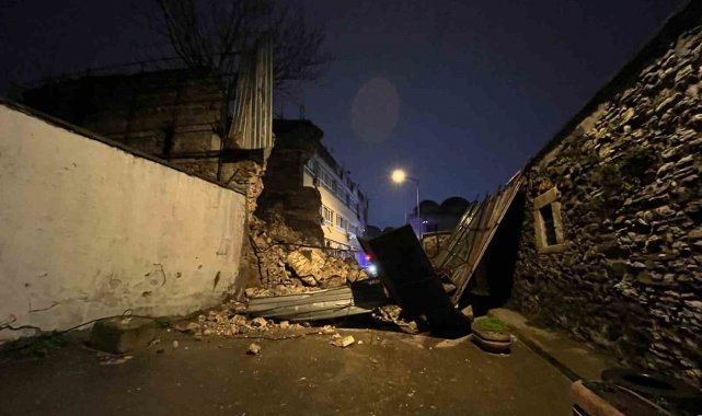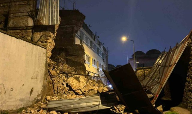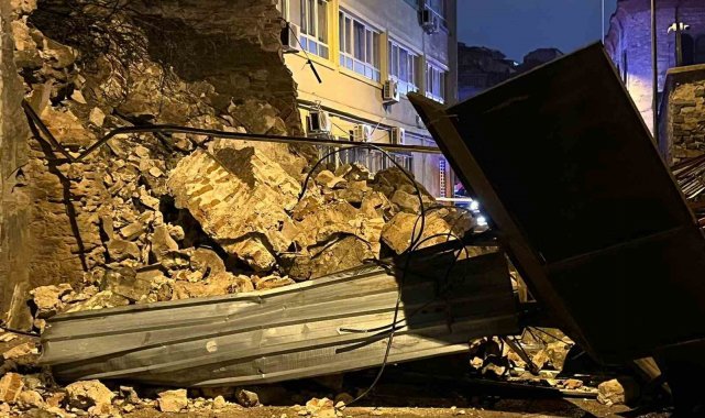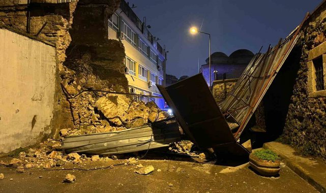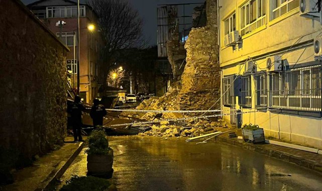 İstanbul Beyoğlu'nda taştan yapılmış tarihi metruk binanın duvarı yıkıldı. Olayda ölen ya da yaralanan olmazken o anlar güvenlik kamerasına anbean yansıdı.
