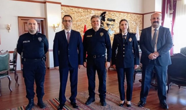 Türk Polis Teşkilatı'nın 180. kuruluş yıldönümü ve 10 Nisan Polis Haftası nedeniyle İlçe Emniyet Müdürü Ahmet Emrecan ve emniyet mensupları, Beypazarı Kaymakamı Vedat Yılmaz'ı makamında ziyaret etti.