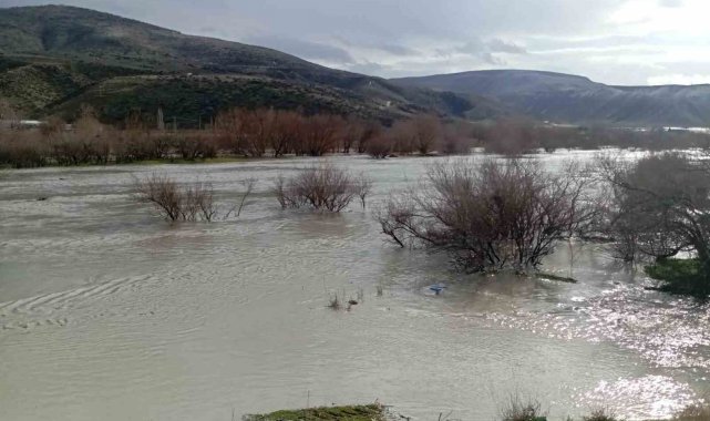 Ankara'nın Beypazarı ilçesinde etkili olan sağanağın ardından dere taştı, ekili araziler sular altında kaldı.