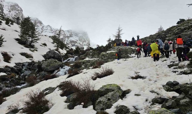 Konya'nın Beyşehir ilçesinde bu yılki geleneksel kar yürüyüşü, doğa tutkunlarının yoğun katılımıyla büyük bir coşkuyla gerçekleştirildi.