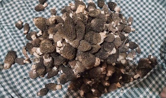 Konya'nın Beyşehir ilçesinde bahar mevsiminin gelmesiyle birlikte doğada kendiliğinden yetişen kuzugöbeği mantarı için hasat sezonu başladı.