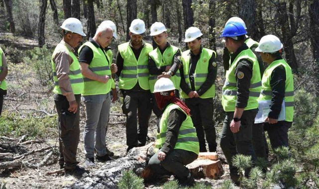 Konya'nın Beyşehir ilçesinde düzenlenen eğitime katılan orman muhafaza memurlarına ormanlık alanda ağaç kesme teknikleri, devirme tekniği, budama, kabuk soyma, sınıflandırma ve ölçüm esaslarına göre ağaçların nasıl boylanacağı bilgileri verildi.