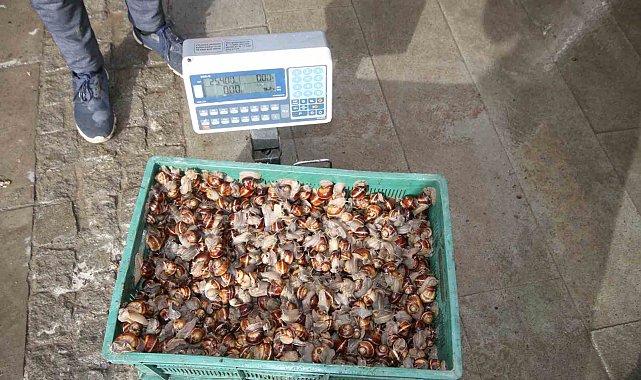 Konya'nın Beyşehir ilçesinde nisan yağışlarının ardından topraktan çıkmaya başlayan kara salyangozları ilçe halkı için geçim kaynağı oldu.