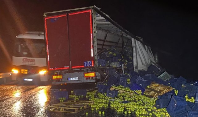 Kaza, Hüyük-Konya kara yolu üzerinde meydana geldi. Edinilen bilgiye göre, seyir halindeki O.T. (43) yönetimindeki 38 JM 630 plakalı meyve yüklü tır, yağışlı hava nedeniyle sürücüsünün direksiyon hakimiyetini kaybetmesi sonucu bariyerlere çarparak makasladı. Kaza sonucu sürücü yaralanırken, tırın 38 ALH 529 plakalı dorsesindeki elmalar etrafa saçıldı. İhbar üzerine adrese sağlık ve jandarma ekipleri yönlendirildi. Olay yerine gelen sağlık ekibi tarafından ilk müdahalesi yapılan yaralı sürücü, ambulansla Beyşehir Devlet Hastanesine kaldırılarak tedavi altına alındı. Yola saçılan meyvelerse toplandıktan sonra çağrılan başka bir araca yüklendi.