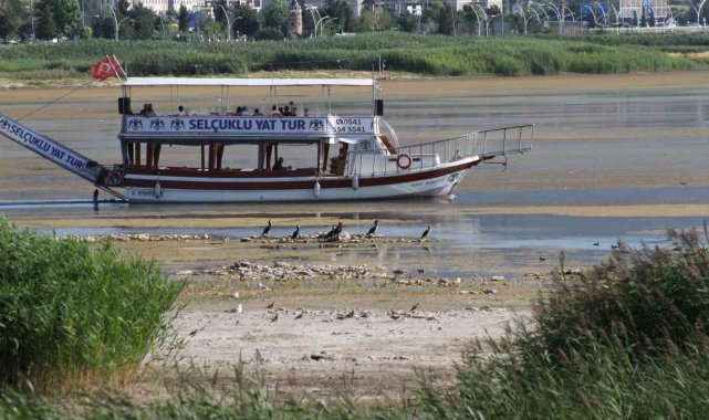 Kış ve bahar dönemindeki yetersiz yağışlar, kuraklık, bilinçsiz tarımsal sulama, buharlaşma kayıpları gibi birçok nedenle su seviyesi giderek düşen ve kıyılarında onlarca metre çekilme yaşanan Beyşehir Gölünde faaliyet gösteren tekneler de seferlerinde sıkıntı yaşamaya başladı. Göl sularının sığlaşması nedeniyle sığ sularda beslenen su kuşlarının ve balıkçılların da akın ettiği gölde yaşanan son tablo görenleri hüzünlendirirken, yaşanan durum dronla havadan da görüntülendi.