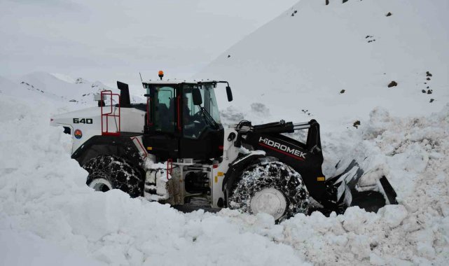 Şırnak'ın Beytüşşebap ilçesinde kar kalınlığının yer yer 3 metreyi bulduğu bölgede ekiplerin yol açma çalışmaları devam ediyor.