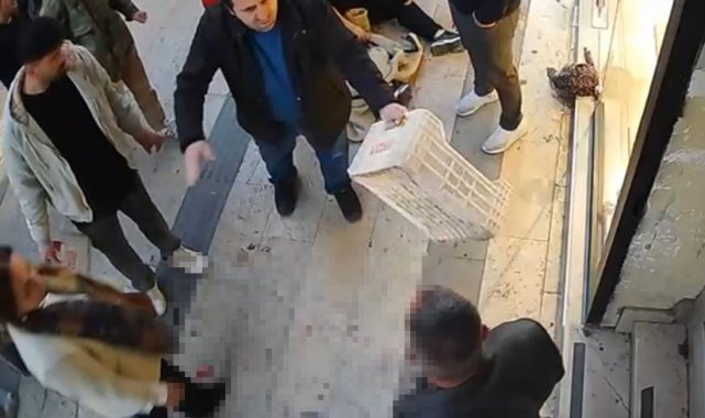 Bıçaklı saldırıya uğrayan kadını, esnaflar meyve kasalarıyla kurtardı