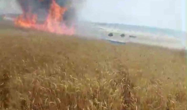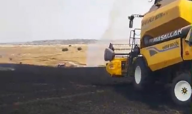 Biçerdöver patozuna giren tel yangına neden oldu, biçilmemiş buğday kül oldu