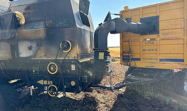 Şanlıurfa'nın Viranşehir ilçesinde, hasat yapan biçerdöverin motor kısmında çıkan yangın, buğday tarlasına zarar verdi