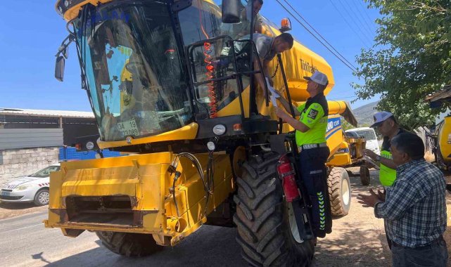 Aydın'da jandarma ekipleri biçerdöver araçlarına yönelik denetim gerçekleştirdi.