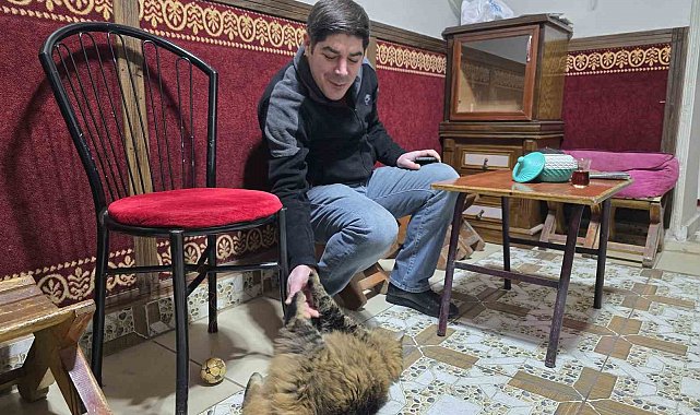 Yaklaşık 3 yıldır Bıdık'ı sahiplendiğini dile getiren Mustafa Yürekli, "Bıdık tam 3 yıl oldu benim yanımda. Daha önce iş yerinin ilerisinde bir çay ocağı işleten bir abimiz vardı. Pandemi döneminde kalp krizinden rahmetli oldu. Rahmetli olunca kedi ortada kaldı. Dışarıda gördüğümde bir parça ciğer verdikten sonra dostluğumuz başladı.3 gün sonra geldi ve bir daha yanımdan gitmedi. Ben de sahiplendim ve bana arkadaş oldu. Üçüncü yılı doldurdu burada olalı. Buradan bir yeri gitmez. Sadece mahalle de bir turunu atar. Gece iş yerimde kalır. Sıcağı da sever her zaman sobayı kurduğum da cam kenarında oturur geleni geçeni seyreder. Seveni çok. Gelen geçen fotoğrafını çeker. Hanımlar, gençler ve yaşlılarımız içeri gelir severler. İki ayda bir de aşıları var" dedi.