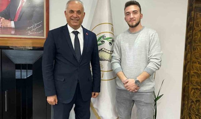 Milli halterci Utku Açıkgöz, BaşkanMustafa Yaman'ı makamında ziyaret etti