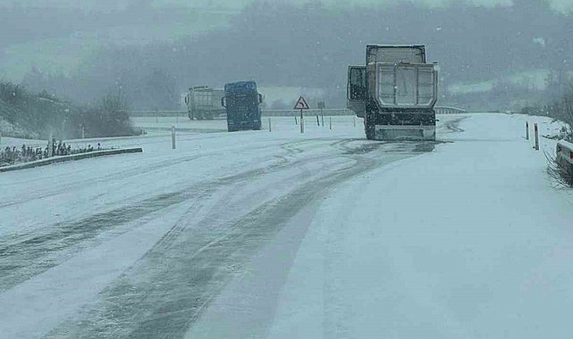 Bilecik'te sabah saatlerinde başlayan kar yağışı hayatı olumsuz yönde etkilerken, Bilecik-Bursa karayolunda sürücüler buzlanmadan dolayı zor anlar yaşadı.