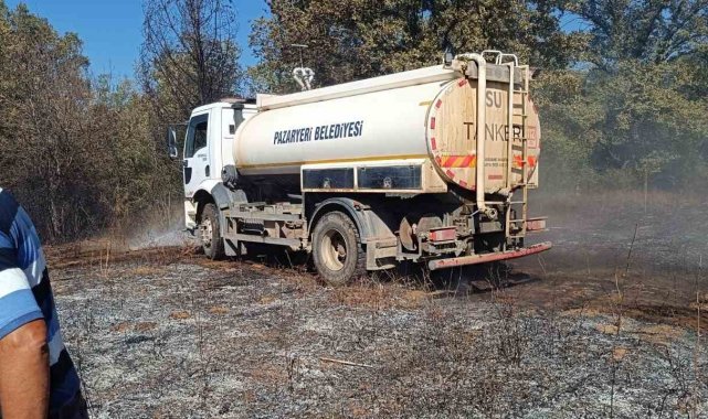 Edinilen bilgilere göre, henüz nedeni belirlenemeyen yangını devriye görevinden dönen jandarma ekipleri fark ederek 112 Acil Çağrı Merkezi'ne bildirdi. İhbar üzerine bölgeye orman ekipleri ve Pazaryeri Belediyesi'ne ait bir vidanjör sevk edildi. İlk müdahaleyi jandarmalar yaptı. İtfaiye ekipleri olay yerine ulaşana kadar jandarma personeli yangın tüpleri ve çevredeki çalılarla alevlere müdahale ederek yangının büyümesini önledi. Daha sonra gelen yangın söndürme ekipleri yaklaşık 1 saatlik yoğun çalışmanın ardından alevleri tamamen kontrol altına aldı.