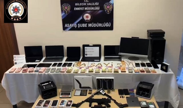 Şüpheli şahısların ikamet ve iş yerlerinde yapılan aramalarda; 4 tabanca (biri otomatik), 138 adet fişek (54 adet 7,65 mm, 84 adet 9 mm), 130 bin 150 TL, 39 bin 700 dolar, 16 bin 650 euro, bin 400 İsviçre frangı, çok sayıda altın ve ziynet eşyası (25 adet ata lira, 47 çeyrek altın, 13 yarım altın, 1 tam altın, 4 bilezik, 8 burma bilezik, kolye, yüzük, küpe vb.), 27 adet cep telefonu, 44 adet SIM kart, 8 adet SIM kart kalıbı, 4 adet dizüstü bilgisayar, 4 adet tablet, 19 adet USB bellek, 25 adet banka kartı, 2 adet para sayma makinesi, 2 hassas terazi, 2 kamera kayıt cihazı, 6 adet yabancı uyruklu şahıslara ait resmi belge ele geçirildi.