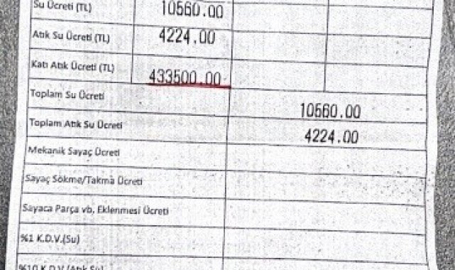 Bilecik merkez Ertuğrulgazi Mahallesi Paşayolu Sokak üzerinde eğitim öğretim veren Murat Hüdavendigar Ortaokulu'nda belediye görevlileri tarafından 18 Şubat günü su sayacı okuması yapıldı. Faturada 3 Aralık 2025 ile 18 Şubat 2026 tarihleri arasında 528 metreküp tüketim olarak 10 bin 560 TL su ücreti görüldü. Atık su bedeli olarak faturaya 4 bin 224 TL yansıtılırken, okula 433 bin 500 TL'lik katı atık ücreti eklendi. Bununla birlikte 87 bin 228 TL'lik KDV ile birlikte okulun su faturası 535 bin 512 TL'ye çıktı.