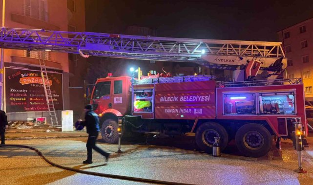 Bilecik'te 6 katlı binanın girişindeki dükkanda çıkan yangın sonucu, tahliye edilen binadaki 5 kişi dumandan etkilendi.