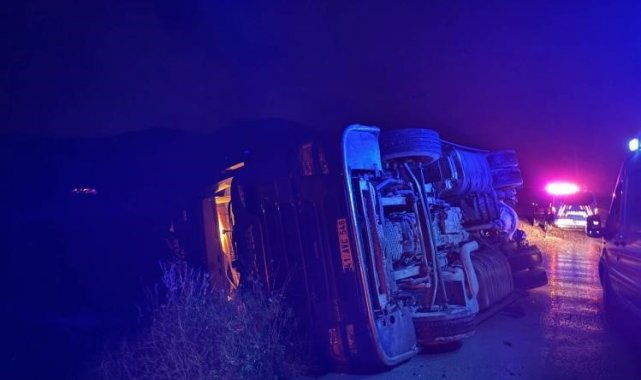 Bilecik'te devrilen tırın sürücüsü yaralandı