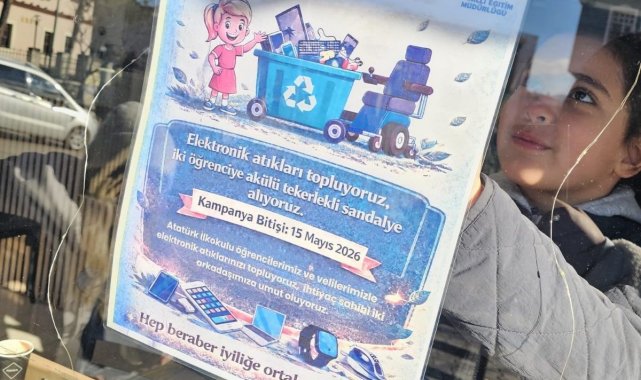 Bilecik Atatürk İlkokulu tarafından hayata geçirilen 'E-Atık Hayra Katık' kampanyasıyla, kullanılmayan elektronik atıklar geri dönüşüme kazandırılarak akülü tekerlekli sandalyeye dönüştürülmesi hedefleniyor. Öğrenci, veli ve öğretmenlerin iş birliğiyle yürütülen kampanya, hem çevreye hem de toplumsal dayanışmaya katkı sağlıyor. Kampanya kapsamında okulda oluşturulan E-Atık birimine teslim edilen elektronik atıklar, lisanslı geri dönüşüm firmalarına gönderiliyor. Geri dönüşümden elde edilecek gelirle, maddi durumu yetersiz özel gereksinimli öğrencilere akülü tekerlekli sandalye temin edilmesi amaçlanıyor. Çalışmalara mahalle esnafı ve vatandaşlar da destek veriyor.