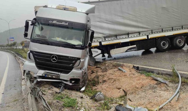 Edinilen bilgiye göre, Sakarya-Bilecik- Bozüyük-Eskişehir karayolunda seyir halindeki A.D.'nin kullandığı 26 AGJ 364 plakalı tır yağmurun etkisiyle dorse kısmının makaslaması sonucunda yolun sol şeritinde bulunan bariyerlere çarptı. Bariyerlere çarpan tıra aynı istikamette seyreden H.Ö. idaresindeki 34 BF 9188 plakalı başka bir tır çarptı. Çarpışmanın etkisiyle 26 AGJ 364 plakalı sürücü tır sürücüsü A.D. yaralandı. Yaralı olay yerine gelen 112 Acil Servis ekiplerince yapılan ilk müdahalenin ardından Bilecik Eğitim ve Araştırma Hastanesi'ne sevk edildi. Yaralının sağlık durumunun iyi olduğu öğrenilirken, her iki araçta maddi hasar oluştu.