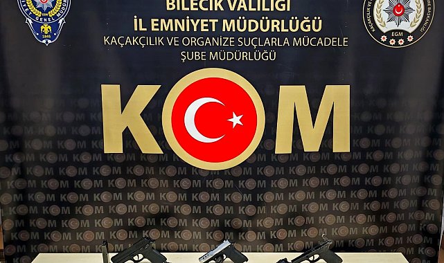Bilecik İl Emniyet Müdürlüğü Kaçakçılık ve Organize suçlarla Mücadele Şube Müdürlüğünce, il genelinde silah ve mühimmat kaçakçılığı yapan şahıs ve organizasyonların deşifresine yönelik sürdürülen çalışmalar kapsamında Bozüyük ilçesinde gece saatlerinde operasyon gerçekleştirildi. Ekipler, belirlenen adrese düzenlenen operasyonda 4 adet ruhsatsız tabanca, 4 adet tabanca şarjörü ve kapak takımı bulunmayan 1 adet tabanca gövdesi ele geçirdi.
