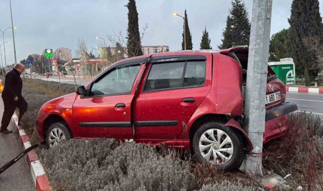 Bilecik'te kontrolden çıkan otomobil orta refüje çıkarak elektrik direğine çarptı