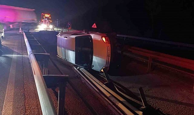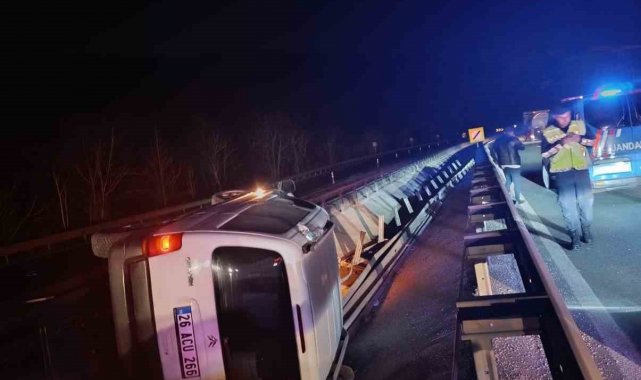 Edinilen bilgiye göre, Bilecik- Eskisehir D650 karayolunda seyir halindeki 26 ACU 266 plakalı hafif ticari araç sürücüsü Himmet K., Karaköy mevkiinde aracın direksiyon hakimiyetini kaybetti. Kontrolden çıkan araç orta refüjde yan yattı. Yaşanan trafik kazasında araç sürücüsü yaralandı. Yaralı olay yerine gelen 112 Acil Servis ekiplerince yapılan ilk müdahalenin ardından hastane sevk edildi.