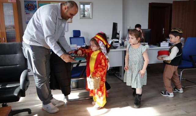 Minik öğrenciler Ramazan davullarıyla söyledikleri manilerle İl Millî Eğitim Müdürlüğü'nde renkli ve duygusal anlara sahne oldu. Ezberledikleri manileri coşkuyla seslendiren öğrenciler, ardından müdürlük personeline hurma ikramında bulundu.
