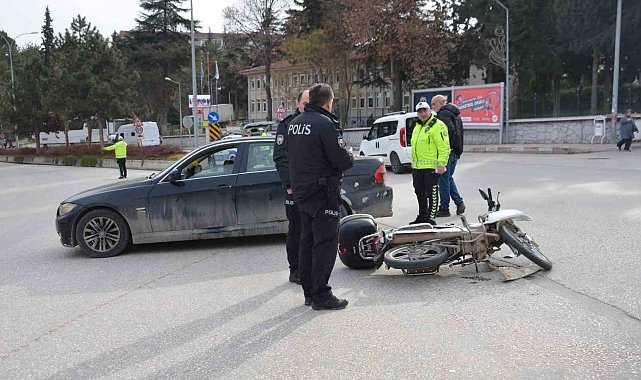 Kaza; Bilecik merkez Eski Otogar Kavşağı'nda meydana geldi. Alınan bilgilere göre; Bilecik merkez Atatürk Bulvarı'ndan seyir halindeki Şahin B. idaresindeki 32 FB 621 otomobil, kavşaktan dönüş yaptığı esnada aynı istikamette seyreden Resulü A. idaresindeki 63 AID 633 plakalı motosiklet çarptı. Yaşanan trafik kazasında motosiklet sürücüsü Resulü A. yaralandı. Yaralı olay yerine gelen 112 Acil Servis ekiplerince yapılan ilk müdahalenin ardından Bilecik Eğitim ve Araştırma Hastanesine kaldırıldı.
