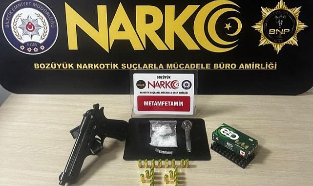 Bilecik İl Emniyet Müdürlüğü Bozüyük Narkotik Suçlarla Mücadele Büro Amirliği tarafından yürütülen çalışmalar kapsamında bir şüpheliye yönelik operasyon düzenlendi. Yapılan aramalarda muhtelif miktarda metamfetamin maddesi ve bong aparatı ile 1 adet kurusıkıdan bozma silah ve çok sayıda fişek ele geçirildi. Operasyon kapsamında 1 şahıs yakalanarak gözaltına alındı.