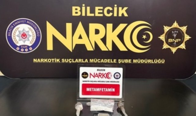 Edinilen bilgilere göre, Bilecik İl Emniyet Müdürlüğü Narkotik Suçlarla Mücadele Şube Müdürlüğü ekiplerince yürütülen çalışmalar kapsamında muhtelif miktarda metamfetamin maddesi ele geçirildi. 'Kullanmak için uyuşturucu madde satın almak, kabul etmek veya bulundurmak' ile 'Uyuşturucu veya Uyarıcı Madde İmal ve Ticareti' suçlarından gözaltına alınan 3 şüpheli şahıs çıkarıldıkları mahkemece tutuklandı. Şahısların dijital materyalleri üzerinde yapılan imaj incelemesi sonucunda 1 şüpheli daha tespit edildi. Tespit edilen şüphelinin adreslerine yönelik düzenlenen operasyonda muhtelif miktarda metamfetamin maddesi, 1 adet hassas terazi ve 3 adet bong aparatı ele geçirildi.