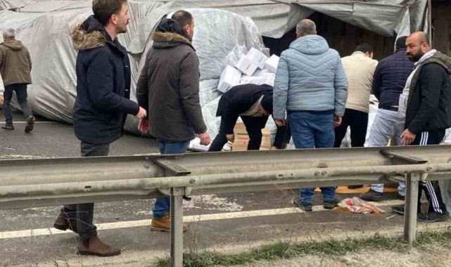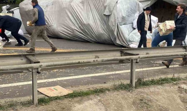 Yaşanan trafik kazası sonrası yola saçılan kuruyemişler Karayolları ekipleri tarafından temizlenirken, trafiğe kapalı olan Sakarya-Osmaneli-Bilecik karayolu bir süre sonra normale döndü.