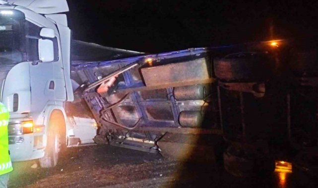 Bilecik'te tır devrildi, yol ulaşıma kapandı