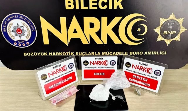 Alınan bilgilere göre, İstanbul'dan Eskişehir'e uyuşturucu taşıyacağı değerlendirilen bir araç, Bozüyük Narkotik Suçlarla Mücadele Büro Amirliği ekiplerinin titiz analiz çalışmaları sonucunda Bozüyük ilçesinde durduruldu. Araçta yapılan aramada 144,31 gram kokain, 4,65 gram bonzai ve 0,94 gram metamfetamin ele geçirilirken, araçta bulunan M.Ş., S.K. ve İ.A. isimli şahıslar gözaltına alındı. Şüpheliler, sevk edildikleri adli makamlarca tutuklanarak Bilecik M Tipi Kapalı Cezaevine gönderildi.