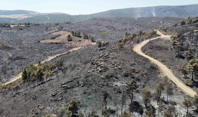 Bilecik'in Osmaneli ilçesinde 5 gündür devam eden yangın sonrasında kontrol altına alınan ve söndürülen ormanlık alan havadan görüntülendi.