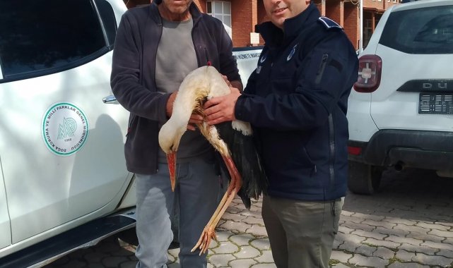 Bilecik'in Bayırköy beldesinde yaralanan leylek koruma altına alındı.