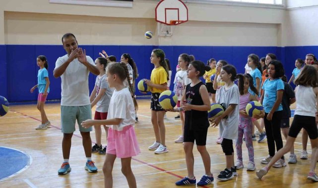 Bilecik Atatürk Spor Salonu'nda, GSB Yaz Spor Okulları kapsamında düzenlenen voleybol antrenmanları hız kesmeden sürüyor.