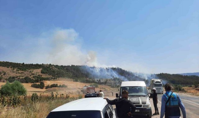 Bilecik'in Gölpazarı ilçesi yakınlarında başlayan orman yangını söndürülmeye çalışılıyor.