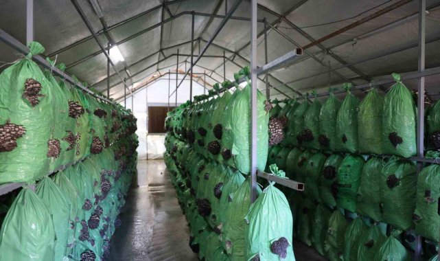 Bilecik'te yüzde 100 hibe desteğiyle kurulan istiridye mantar üretim serası, tarımsal üretime katkı sağlamaya başladı.