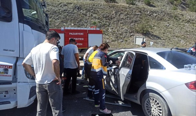 Bilecik'in Pazaryeri ilçesinde, üç otomobil ve bir tırın karıştığı zincirleme trafik kazasında 1 kişi yaralandı.